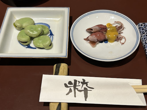 まずはそら豆とホタルイカで季節を味わいました。天ぷらはさっくり、揚げ出し豆腐はとろろがかけてあり美味しかったです。お肉はおろしポン酢と生野菜でさっぱりいただきました。ここまでで結構お腹いっぱいでしたが、お蕎麦がまた美味しくて、しっかり完食。