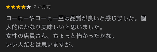追伸)ご返信いただきましため、追加します。 まず、そちらのおっしゃっている客ではありません。利用日時は2月9日13時ごろ、女性一名です。 他に気になったお客様がいて、その方と勘違いされていると思います。それにも関わらず、誰もが見れるコメント欄でこういったコメントをされるのはいかがなものでしょうか。返信されているのは、店主かバイトの方か存じませんが、私にしたら不愉快の上書きです。よって、星一つ減らします。 ちなみに、サンドイッチの具材がないため売り切れと言われました。その前は過去3回ともこちらのお願いしたケーキが売り切れでした。 サービスを提供する側として、コーヒー屋だからコーヒーの売り切れがないのは突然でしょうけど、フードはなくても良いなら、置かない・メニューに記載しなければよいのではないでしょうか。日曜の13時に食材の売り切れとは、杜撰な管理をしているのか、売る気がないのかそういう事にはご返信頂けな...