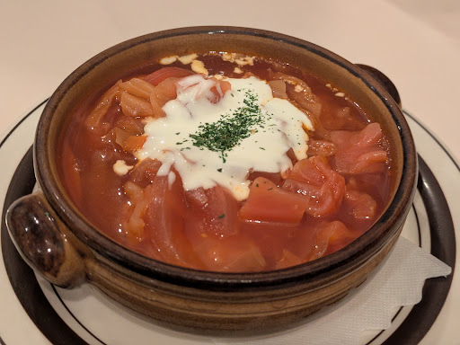 Read more運良く当日予約がとれたランチ。こじんまりしたレストランで、印象は目立たない知る人ぞ知るお店。ロールキャベツが有名らしく、高いのかなぁ…と冒険する気持ちで出掛けました。 ランチは3種類。 店内もお店も、聞いていた通りステキなお店です。奥行きある絶妙なソースに、プレートに揺るぎなく聳えるロールキャベツ。ロシアを体感する芳醇な味で、柔らかく、じんわりジューシーなお肉が美味しかったです。ロシアンティーも、ちょっとおしゃれな感じです。 お店自体は分かりづらい立地で、見つけたらステキな空間と美味しいお料理にめぐり逢えます。 親しいお友達やご夫婦、恋人同士、オトナになった娘さんとランチ…と、大切な人と行きたいようなお店です。お子さん連れは難しい気がします。駐車場はなく、物語に出てきそうなお店。 高過ぎず、安すぎずで上品で美味しいお料理が頂けるのは、有り難いです。ぜひぜひ、ま...