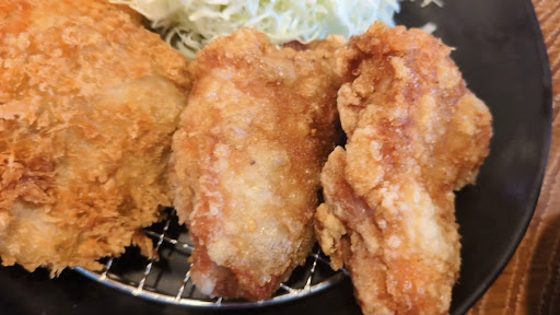 まず料理を見ると写真のイメージとは違う料理… とんかつとからあげ2個の定食… とんかつは切ったあと雑然に並べたかつ。カキフライか?と思うような小さなからあげ。 極め付けは千切りキャベツにドレッシングが掛かってる… とんかつソースでキャベツを食べるのか好きなので、かなりショックでした。
