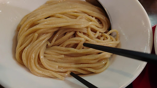 今回は味玉つけ麺大盛りで。 普通盛り→200グラム 大盛り→300グラム 特盛→400か500グラムを選べる。 店内も綺麗にされてて、荷物を置けるカゴも用意されています。 テーブルには紙ナプキンとお水のピッチャー等用意されています。割スープも置いてあるので便利。 つけ麺のスープがぬるくなると 焼き石下さいと店員さんに伝えて焼き石もらってスープに入れます またスープが温かくなるのでお勧め! 最初に小皿とお箸が配膳されますが、その小皿にレンゲを置いて、そこの上に焼き石を置いてくれるので自分でスープに入れます。 麺もモチモチでいい感じ。 スープも太いメンマやチャーシュー美味しい