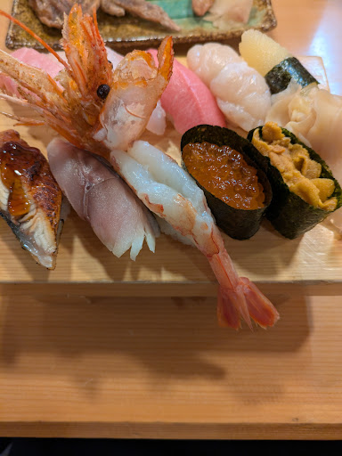 Read more寿司屋というよりは「寿司もある居酒屋」という感じのチェーン店。日曜夜の早めの時間に予約して訪問。その日は団体の予約が入っているらしく、フリーで来店された方は断っているようでした。この辺りは飲食店があまりないので貴重です。ドリンクや料理は普通にホール担当に注文しますが、寿司は注文シートに自分で記入して店員に渡す形式。一貫ずつ注文できるのがいいですね。寿司は、ちょっといい回転寿司という感じ。ただ、握る方はお一人のようで、注文から提供までにちょっと時間がかかります(団体さんと重なっていたら、どうなっていただろう?)。ドリンクが少し高めなので、19時までのドリンク一部半額を活用できれば、...