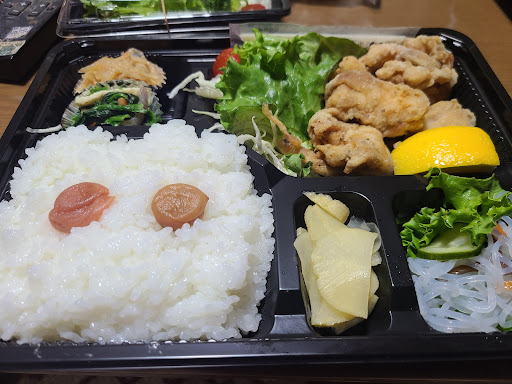 夕方こちらの前を通るとお弁当ののぼり 聞いて見ると出来ますよと言うことで注文 エビフライ🍤と唐揚げを注文 お値段安め 15分くらいかかると言うのでお店の邪魔にならないように車で待とうと外へ しばらくすると支払いしていた同行者が呼んでいる 厨房の店主らしき人が店員さんに外で待たせないで中でお茶でも出してあげなさいって言ってくださったようで中で待たしてもらいました。お弁当 美...