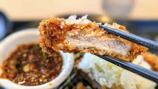 トンテキと呼ぶにはギリギリの薄さの肉だったので2枚盛り正解。デミグラスソース風のソースがかかり、フライドガーリックがたっぷり乗っていた。肉質も柔らかいロース肉で、美味しく頂き...