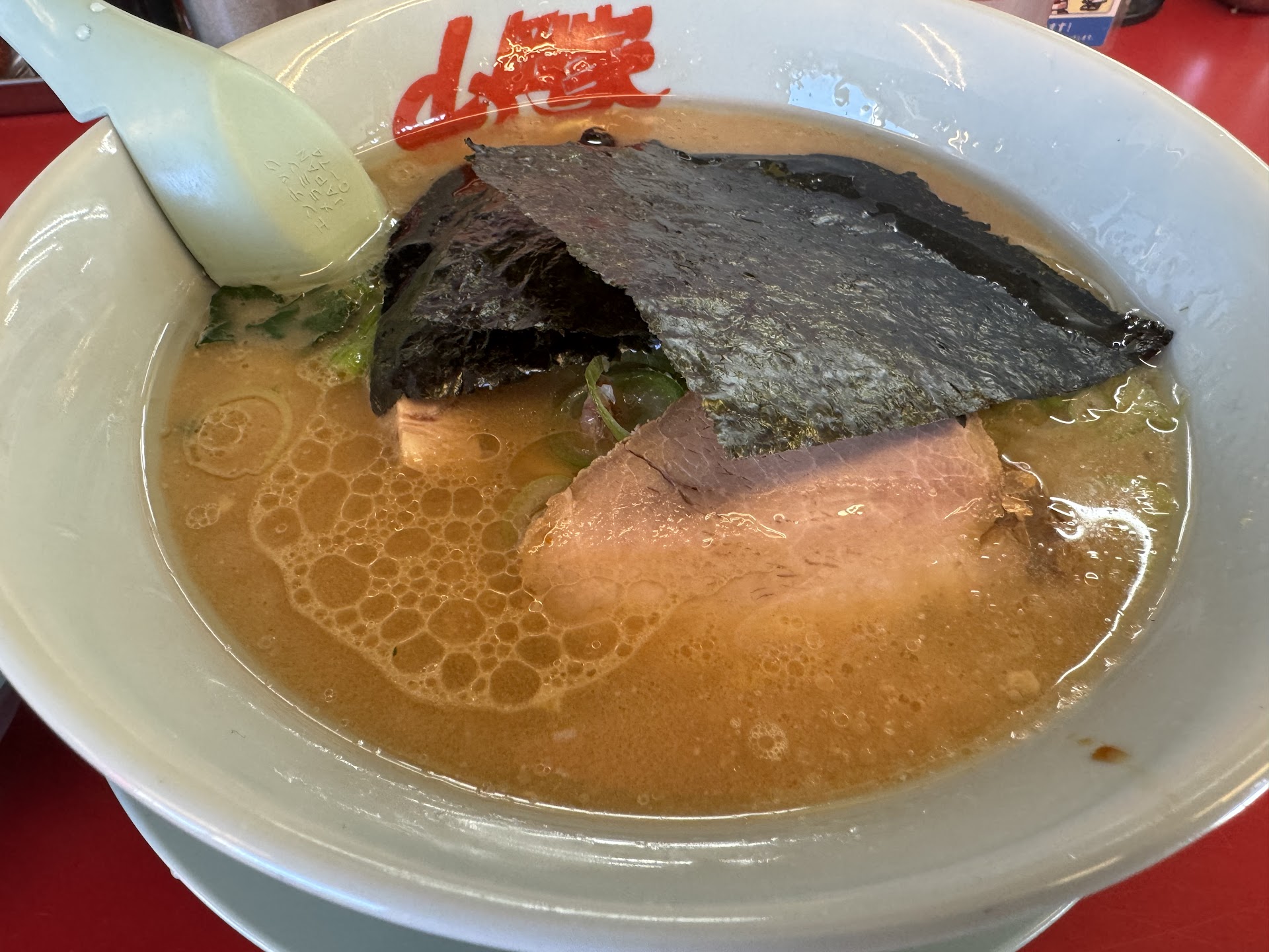 濃厚な豚骨スープに、ラードが浮かんでおり、スープにコクが出ますね
