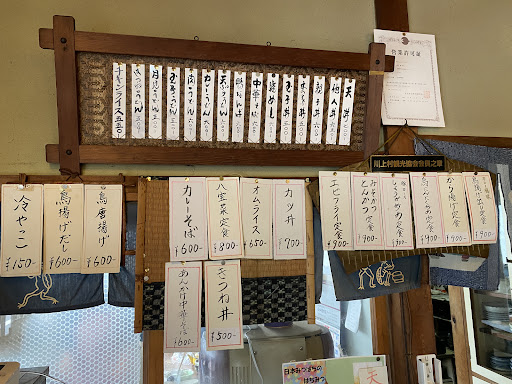 2025.8.13(水)奈良から熊野にあるMの実家に向かう際に、山の中で見つけてランチで利用しました。奈良市街からしばらくは街中を走っていましたが、気がついたら169号線は山の中へと突き進みました。ヤバい!ランチ難民になるかもねと思いながら走っていると、カフェの看板があったので減速して走っているとカフェを見つけ、その先に「くらや食堂」を見つけました。店先に暖簾が出ていたので、店の横にある駐車エリアに車を停めて13時に店に入りました。駐車エリアは、白線も何も無く、4台ぐらい停められると思います。 店は老夫婦がお二人でやっていて、とても懐かしい雰囲気の落ち着くお店です。僕はカツ丼、Mは天ぷら蕎麦にしました。お二人で仲良く協力しながら調理をしている様子が声と音で伝わってきます。注文から約20分してところでカツ丼、その2分後ぐらいに天ぷら蕎麦がテーブルに届きました。 カツ丼は、トンカツ4枚で、ご飯は卵かけご飯のようで、味は少し甘めでした。天ぷらのエビは大きくてブリブリ🦐山の中で出会えた素敵な時間、...