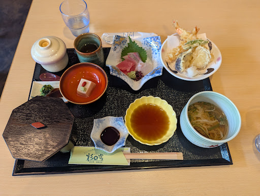 Read more天ぷらのランチをいただきました。 海老は2本、タケノコ、ナスビ、ブリ、シシトウ、ちくわ、だったかな。 にゅうめんには、ワラビなど山菜が入って、出汁もアピールしすぎない優しい味でした。 茶碗蒸しは、また上品な味付けと柔らかさで美味でした。 全体的に、丁寧な調理をされている料理...