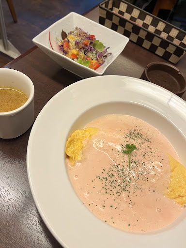 サラダに使われてる野菜の種類が少なく、スープも殆ど具無しのランチに1000円くらい取るお店が多い中 良心的で決して手抜きをしないお店なんだなぁと思いました。