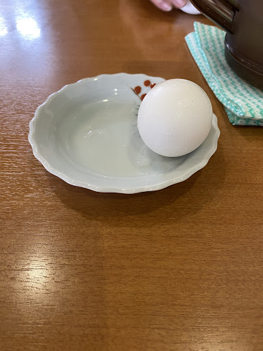 お店の方によれば、どのラーメンメニューも馬肉チャーシューなのだそうです。今回は醤油ラーメンを注文しました。調理場と客席をつなぐ窓のような場所にあるゆで卵(サービス)を食べながらラーメンを待ちます。