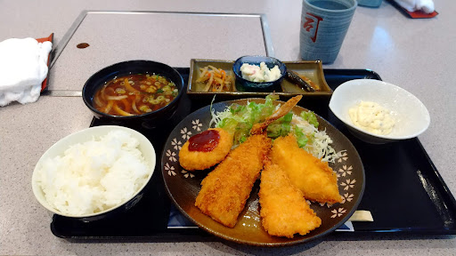 Read more本当、6・7年ぶり位に結崎が自宅のお客様を訪問後、ちょうどランチタイムと言う事で候補は3軒。 1軒目のお好み焼き屋は外で2人待ってたので、コチラに来てみると、良い感じ。大将の元気の良い「いらっしゃいませ!」から始まりました。 お寿司屋さんのようですが、定食も充実、本日のまかない定食にしました。鯵か海老かミックスを選べるフライでしたが、鯵にしました。コーヒーもついていて、この値段はインフレの時代...