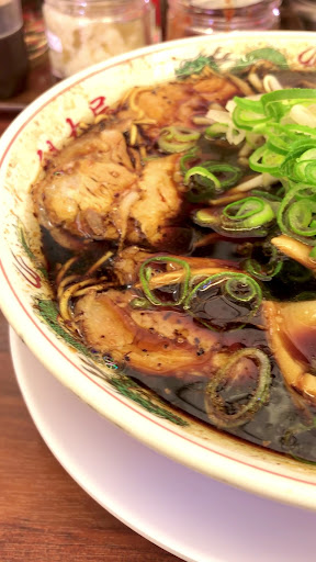 待つこと約3分... 来ました!京都漆黒黒醤油ラーメン...