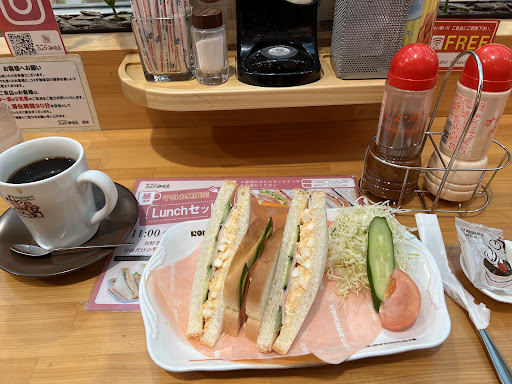 Read more遅ればせながらコメダ珈琲デビューです。11時半過ぎに来店しましたが、お1人様はカウンターか2人席でということでカウンターに。ランチメニューの中でミックスサンド(コメチキなし)とコーヒー(たっぷりサイズ)を注文。コメダは量がすごいと聞いていましたが、特に多いとは思いませんでした。味も普通かな。値段は税込み1,030円で、この内容なら700円~800円が妥当と思いました。 ※たっぷりサイズは100円増しですが、これくらいサービスして欲しいな カウンターということもあり、椅子もそれほどくつろげる仕様ではありませんでした。 又、一定時間(90分だったかな?)過ぎるとお声掛けする事もあると書いてあり、ゆっくり過ごす気分にもなれず早々に退散しました(12時少し回ったくらい) 次回への期待も込...
