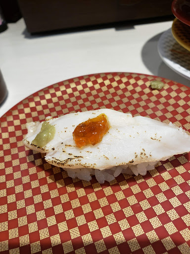 食べたもの 1、大切りまぐろ・・・大切りだけにある程度まぐろらしいし満足感はあるが、まさに大きだけ 2、愛媛県産クエ炙り・・・ソレナリノ味。高い割に感動が無い。複数の他店でミックスのタマクエを食べたことがあるけれど、至福の美味さでしたよ。値は張っても後悔しなかった 3、うなチーファイヤーナッツロール・・・ウナギは大好き。もちろんヌルヌルしたところも好きです。テレビで好評だったらしいですが、ウナギの味はたしかにします。でも色々まぜ合わさった中に、ヌルッとした感触が気持ち悪い。ウナギはウナギだけでいい 4、桜肉にぎり・・・柔らかいけれど、生あたたかい。常温で置いていたのかな 5、アボカドの軍艦・・・不味い。低価格回転寿司はこの辺りが美味しくないと意味が無い 6、ハマチ天身にぎり・・・唯一、美味しいと思った。一貫で110円はまあまあ。これだけ10皿食べても良かったかも