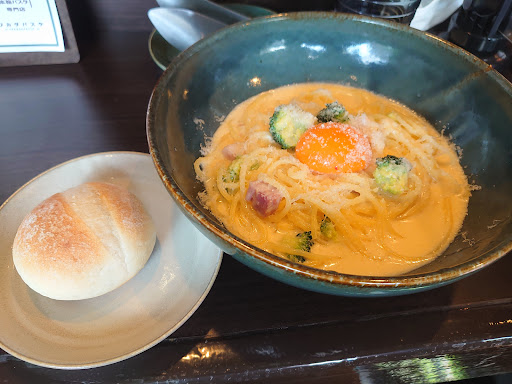 結論を先に申すと、非常にレベルの高いパスタでした。やはり生パスタの風味に絶妙な塩加減(日本人好み)にバランスの良いソースの味わい、今回はカルボナーラとトマトソース(写真無し)を両方食べました。(二人でシェア)