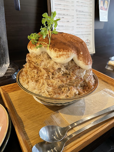 食後にはティラミスのかき氷も頂きました。 かき氷のみの注文は出来ないので、パスタをやっつけてからのかき氷となります。お店の人に確認したところ2人できてもかき氷を注文するためには2つパスタを頼まないとダメとの事ですので、かき氷を食べるためには必ずパスタを食べる必要がありますのでご注意下さい。
