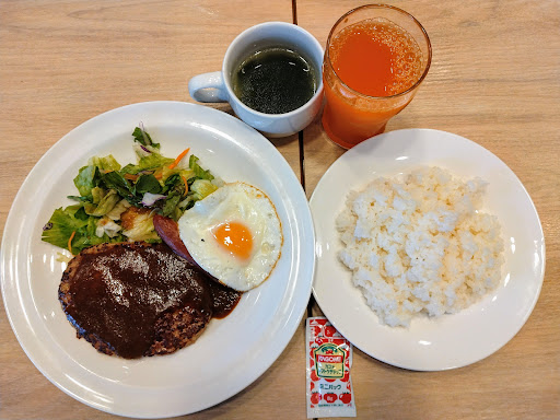 Read more日曜の朝8時前、静かな街並みに包まれた時間に訪れたモーニングは、シンプルなハンバーグセットで始まりました。ナイフを入れるとふんわり柔らかく、ほのかな肉の甘みと、まろやかな酸味を纏ったデミグラスソースが絶妙に調和。添えられた目玉焼きは黄身がとろりと残り、裏面は香ばしく焼かれ、ソーセージは小ぶりながらもパリッとした食感が楽しいアクセントに。ライスを選んだのは、トーストでは得られないハンバーグとの一体感を求めたからで、炊き加減もちょうどよく、満足のいく一皿でした。広々とした店内には柔らかな自然光が差し込み、7割ほどの席が埋まっていても、心地よい余白が保たれています。女性ひとりでも過ごしやすく、朝時間のリセットにぴったりの空間でした。接客は過不足なく丁寧で、ドリンクバーの管理にも気配りが行き届いており、安心感があります。決済方法も幅広く、セルフレジ導入でスムーズ。住宅街にありながら駐車場も充実しており、車での来店にも便利な、静か...