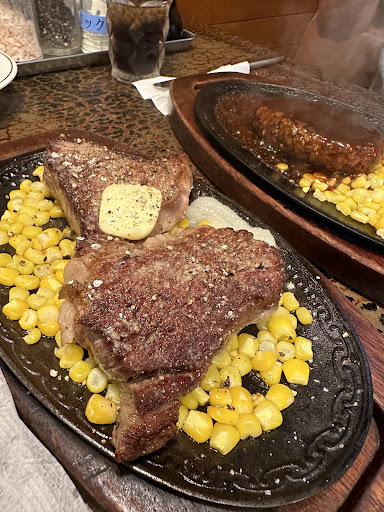 ステーキやハンバーグもとにかくコーンの海にドーンとのってる感じで、たっぷり🌽使われているのが、コーン好きにはうれしい❤️