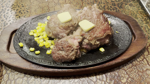アメリカンスタイルのステーキハウスと謳っていますが、肉は柔らかいオージービーフ。厚切りの赤み肉をシンプルに焼き上げたステーキが売りで、客がテーブルでセルフ調理するスタイル。店のおすすめは何にでもかけるガーリックパウダーw