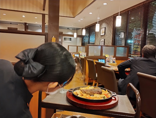 Read more期間限定ながらREDステーキなるものがあり訪問。星5つはそれに対する評価!1ポンド程度の赤身肉(みすじ)を高温で焼いたとのこと。中の方は赤いが肉汁が流れることのないきちんとした焼け具合に感心する。ファミレス水準の調理から一歩抜きん出ている。実際、味は濃く下手なステーキ専門店は負けている。遠赤外線がきちんと効いているのは鉄板焼と比べたら勝負にならない。このお店の圧勝。他の肉料理は味は値段なり。ソースで食べるステーキか、脂多めのハンバーグか。そちらは値段を加味して星2つか3つ。REDはまたすぐにでも食べたいが、残念なのは期間限定なこと。通常メニューにしてくれたら常連、必至。その際はソースは不要。このステーキはテーブル備え付けの塩だけで食べないと勿体無い。今回も塩以外は一切使えなかったので、ソース不要割引があると嬉しい。再訪問必至! 20240510追記 2枚のパターンで頼んでみた。1枚は同じ、非常に美味しい出来だったが、もう1枚は明らかに遠赤外線での焼き不足で、いつまで経っても中からの肉汁のドリップが止まらず。下味も違いがあり、調理の難しさか、料理担当者の腕の差が出る可能性があることが判明。焼けすぎて固くなるのを嫌うのは判るが、個人的には肉汁が流れるような焼け具合は嫌いなので、会社には焼き不足を避けるよう...