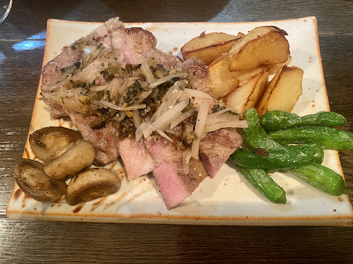Read moreわたしは夜19:30から利用しましたが、まず、店内がガラガラなのに2名席の狭い端っこの席に彼女と2人で座らされ、隣に,お客さんがいないのに水や空いたビールグラスを置いたらハゲのオヤジのマスターに『隣の席だから』と置くなと怒られた。 キッチン周りも汚く、清掃も行き届いておらず、田舎の中華料理のカウンターみたいに瓶やグラスがネチョネチョして汚なかったので食欲も失せ、ポテトの味付けは塩っぱく、サラダもしんなりして本当にガッカリしたお店だった。 まず、マスターの接客が常連しか眼中にないからサラダやステーキが出てくるまで30分以上かかった。 本当にはやく帰りたかったが彼女の手前、我慢に我慢を重ねた。やたら、取り分けた皿や、メインディッシュの取り分け終わった皿を下げたいらしく『やたら、下げるの好きですよね?』と聞いたらマスターは笑ってやがった。 こいつ、バカなんじゃないかな?と思うような、最悪の時間をこんなところで過ごしてしまったことを、すごく後悔した夜になってしまった。 ぜったいに皆さんにお伝えしたい。 『隣の店の方が、はるかにしあわせ...