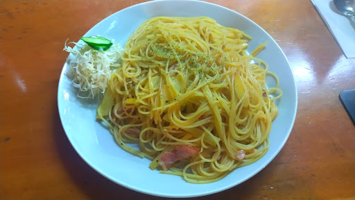 Read more2023/07/07(金)の12:40頃に1人で来店。待ち無し。期間限定メニューの新じゃがいもとベーコンの正油味を単品で注文(780円、現金)(量→200g,太さ→1.4cm(細麺))。ちなみに太麺は1.8cm。 スパゲッティには少量のキャベツ、きゅうりが付く。グラタンなど他のメニューにも付くのかは分からない。麺の量は多いが、麺同士がくっついていることは無く好印象。おそらく油を多めにしているのか、食べ終わったときにオリーブオイルがお皿に残っていることがある。健康には良くないのかもしれないが、そのオリーブオイルを飲むのが美味しい。じゃがいもはフライドポテトのような形に切られていて、ほくほくしていて美味しかった。ベーコンはカルボナーラに入っていそうな感じの、少しカリカリしたベーコン。この量を考えたらかなり安い。 ここには何回か訪れたことがあるが、トマトソースよりはこのような和...