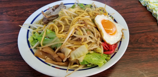 【追加】焼きラーメン 焼きラーメンにやさい追加。デフォルトで野菜も入っています。具材はキャベツ、もやし、ひき肉が麺と共に炒められており、チャーシュー2枚、目玉焼き、メンマ、紅しょうがが乗っており満足感あります。 ひき肉がうまみを出していていい感じです。麺は麻婆麺で使われているものと同じモチモチのタイプ。目玉焼きが半熟で潰して食べるとこれまた合います。油そばとは違い、ギトギトしていないのでもたれず食べやすい。おいしかった。