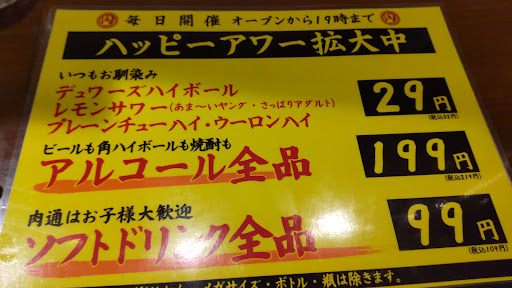 ハッピーアワーでハイボールなどは29円と破格の安さでしたので有り難くいただきましたが、安く提供することは感じの悪い接客をして良い理由にはなりません。