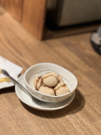 自家製梅シャーベット & バニラアイスと野菜チップ添え 自家製の梅がこれまたおいしい、これをシャーベットにしてあり〆には最高です。 バニラアイスは温かいお芋と。これはかなり危険なお味です。おいしすぎます。