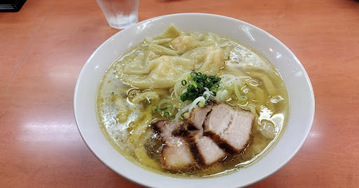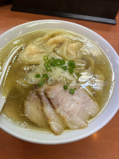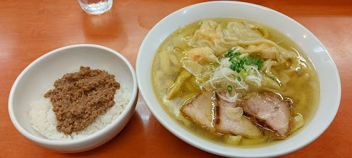 今回は、海老ワンタンメンの大盛と生姜丼をいただきました。 海老ワンタンメンですが、スープはさっぱり塩系で優しいながらもしっかりと味がついており美味しいです。 麺は自家製麺ということで通常の店では見られないような太めの平麺で、うどんのような腰があり食べ応えがあります。 ワンタンは大きめの海老が入ったものが3つ入っていて、海老がプリプリしていてよいです。 チャーシューも良く味が染みており良い感じの柔らかさでこちらも3枚入っておりました。 別注文で頼んだ生姜丼ですが、こちらは牛そぼろに生姜の味付けしたような、さっぱりしていながらもそぼろの美味しさが伝わってきました。100円でこの丼が食べられるのはかなりお得感があります。 知人はギュウロウメンなるものを頼んでおりましたが、こちらは通常のラーメンの上にこれでもかという位、牛肉が盛られてました。 味的には醤油ベースの味付けではなく、スープの味を損なわないようなないような味付けでとても美味しかったとのことでした。 次回訪問時には食べてみたいと思います。
