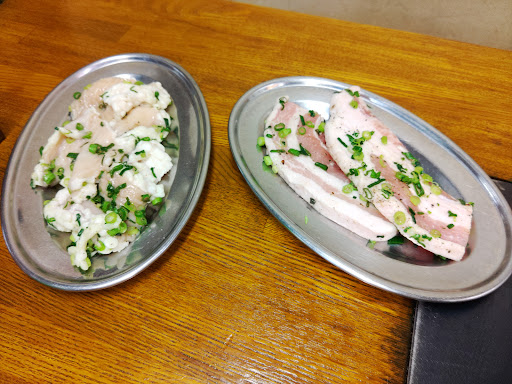 Read more孤独のグルメ再放送を見た上司から誘われて訪問。 予約不可、90分制ということです。 8月の金曜日18時過ぎに訪問。先客なし。口コミ通りエアコンなし。まずはビール、ハラミ、ガーリックハラミ、厚切りタン、キムチなどオーダー。 肉は大ぶりなため付属のハサミで着る必要あり。 これがめんどくさい。厚めに切られた肉は柔らかくうまい。ガーリックハラミは薬味のざくざく食感が最高です。キムチはしっかりと発酵したもので酸っぱいです。私は苦手なテイスト。 空いていた店内も徐々に満席に。エアコンなしのため七輪の熱気と煙、食事による発熱でサウナ状態です。燻製になりそう。 19時ごろになると外に並びができてきました。 追加でガーリックライス、上カルビなどオーダー。ガーリックライスは味付けよく、うまい!カルビは上質で厚切り、とろけるようにうまい。 店員さんは皆さん親切で焼き方教えてくれたり、取り分けてくれたりとありがたかったです。 しかしながらサウナのような店内、店員さんからもスパイシーな汗の匂いが漂い始めます。 肉質も店員さん(スパイシーはno!)も最高ですが、環境というホスピタリティに不満残ります。このご時世、エアコン排気くらいは設備投資していただきたい。 これらを考えると割高な焼肉と思えます。 ...
