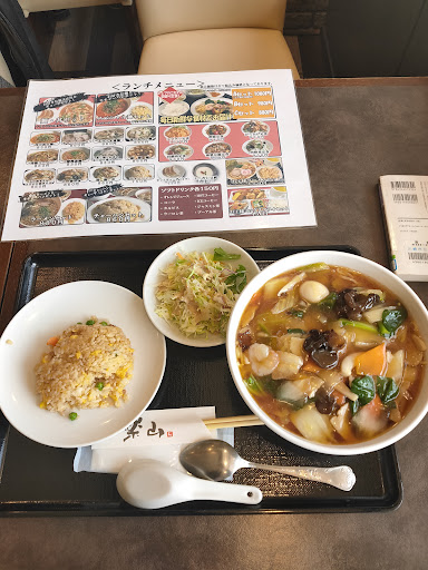 以前からジョギングしている最中に見つけて気になっていたお店に初めて入りました。 表に出ているランチメニューの看板を見た時、これははずしたかも・・・、と思いました。 いざホテルの中に入ってお店の入り口を見た時、表の看板とのギャップで一気に上がりましたが、週末のお昼時なのにそこそこ広い店内は先客が2名のみ・・・。 これはやはりはずれか・・・?と思いつつ、五目旨煮麺と半チャーハンのセットを頼みました。 提供された料理を見て、麺は器がとても大きくボリューム満点です。大して半チャーハンはなんだかしょぼいです。チャーハンは見た目だけでなく味もしょぼかったです。 五目旨煮麺は味は美味しく、ボリュームもあるのですが、いかんせん具の量がさびしかったのが残念でした。 フロアを担当している女性の対応はどこかしらぎこちなく、支払いをクレジットで頼んだときも、あまり対応に慣れていないのか、やけに時間がかかりました。本人はいたって真剣にやっているようなので、特にそれがどう、というわけではないのですが、こんなにやたら手間取っていて、普段はどうしてるんだろう、と疑問に思いました。 総じてこのお店に関する印象は、いろんなことがぎこちない。 この一言に尽きましたw なにか良い点とそうでない点がいつも必ずセットになっているような、気分的にはシュールなB級映画を見ているようなw 個人的には料理はボリュームも有り、具は寂しくも味は申し分なく、なにより町中華より上の広々とした空間でゆったりと食事ができる、というのは良いのでは、と思いました。 ここに行き着くまでに急角度の坂を登らなければならないのが一番の難点ですが、次回はエビチリか酢豚を...