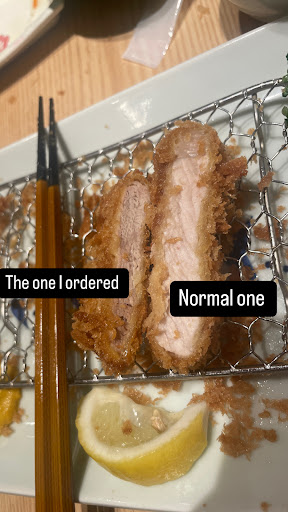 I ordered the oyster and six slices of tonkatsu, but the six slices of them were surprisingly tiny and looks unproper (this is still fine cuz offering things perfectly all the time is impossible). Hence, I asked one staff if this is the right one I ordered. Then he brought them back to the kitchen and come back saying this is exactly the one I ordered. But he misunderstood the menue I ordered and then coming back with his (perhapes) both whose saying this is right. While waiting for the tonkastsu, I saw they were spatting and saliva came into the katsu, which discouraged me from eating anymore.