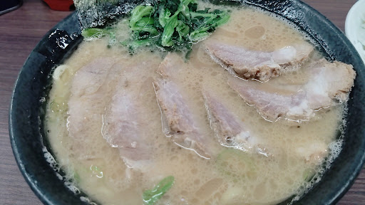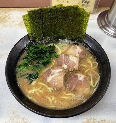 Read moreJR川崎駅東口からだと徒歩約15分くらい、京急川崎駅からでも10分くらいとちょっと駅からは遠め。稲毛神社の斜め前辺り、国道15号線沿いにあります。 久しぶりに週末に伺った所、以前より美味しくなった気がして、平日金曜日のランチ時に再訪。13時より少し前でしたが、店頭にはすでに4〜5人並んでいました。 まずは店内に入って左手にある券売機で食券を購入。チャーシュー麺(並)(¥1,150)とらーめん(並)(¥950)を+¥100で中盛にして茎わかめ(¥150)をトッピング、それとライス(¥100)を発券。その後に店頭に並ぶと、すぐに店内へ案内されました。 店内はL字型カウンター席が12席くらい。お水はセルフ。 食券を渡す際にらーめんを脂少なめで注文しました。らーめん1杯につき、サービス共通券が渡され、2枚以上で渡されてすぐに使えるのはありがたい所。枚数によりトッピングやライス、並盛らーめんまでサービスがあるのはすごいですね。 厨房内は割と綺麗で、手際良く流れるように調理しているので、回転率も早い。 10分ほどして運ばれてきたチャーシュー麺には、チャーシューが6枚。それに海苔とほうれん草のトッピング。スープは見た目よりもアッサリ目で美味。チャーシューも箸で持つと崩れるほど柔らか。 テーブルには調味料が色々置かれているので、好みに味変するのも楽しい。にんにくも無臭なのがあるのはありがたいし、店員さんに言えば刻みにんにくももらえます。お酢も唐辛子入りのもありました。 帰り際に店頭のメニュー写真を見て知りましたが、茎わかめ入りが一番人気のよう。それを知らずに茎わかめをトッピングしたのですが、食感も良く、口の中がさっぱりとするので合いますね。人気なのもわかりました。 ご飯には香物を乗せてくれてあるのもありがたい。そしてご飯...
