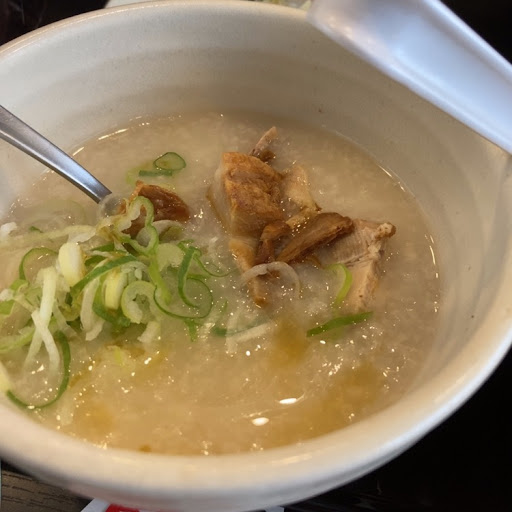 おかゆ。 想定より美味しい。 刻んだチャーシューがそこそこ入ってる。 ご飯進む味のご飯だわー(〃▽〃)
