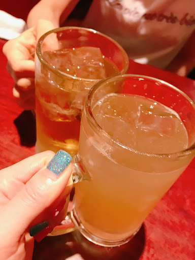 赤い壁がとっても印象的なお店で、なにせコスパが良すぎるお店なので早い時間から人でいっぱいですよーぉ!!!! 乾杯二人とも最初は、りんご系のドリンクをチョイス 店内のレッドに囲まれて、なんかすでにわたしたちのテンションがすごい高いんですけど。。もともと❤️笑