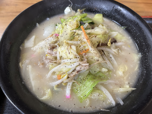 麺線の丸刃16番クラスは正しく『チャンポン玉』で、スープは油脂(背脂か?牛脂か?)添加のしっかり強白濁でコッテリ系、塩梅がやや塩気勝ちなのがさすがかつての炭鉱街・川崎だっ! 働く者の街の味わいだ、やぱここは筑豊だ、安心した…(˶ᐢωᐢ˶)ウレシイカギリ。。。