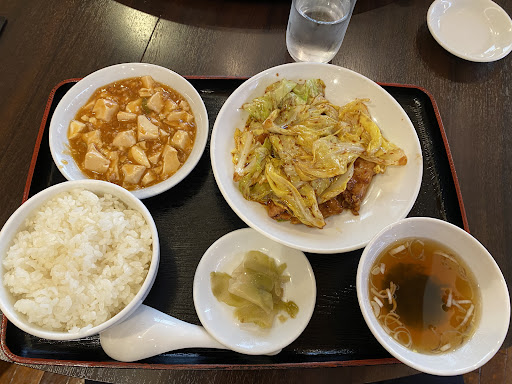 The B Lunch Set (¥880) had miso stir-fried pork and cabbage, small mapo tofu, soup, pickles, and rice. The flavors were mild and easy to enjoy.