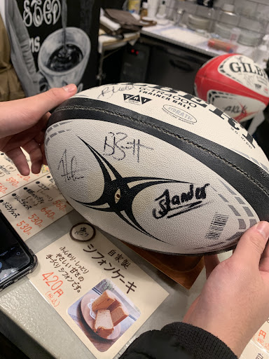 お店に入ると、入って直ぐの正面にキッチンカウンターがあり、横の黒い影に白文字の素敵なデザインでロゴが大きく描かれています。その壁の裏側には、今度はロゴと共に鳥たちの絵が描かれていて、このお店の素敵な雰囲気を作り出しています。
