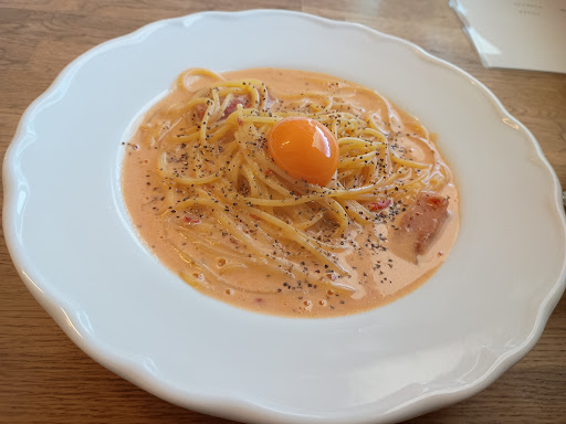 Read moreテーブルが4つほどあるこじんまりとしたカフェ。入店してびっくりしたのは、ドリンクを頼まないとフードメニューが頼めない仕組みになっていたこと。ドリンクは安いもので600円から、フードは1000円台のものが多いので1人あたり2000円負担することになります。また喫茶店やカフェで必ず出るはずのお冷やのサービスがありませんでした。暑い中入店して喉が渇いていたので、飲み物が来るまで辛かった。マスターひとりで切り盛りされてるので仕方ないかも。注文したレッドカルボナーラは普通のカルボナーラに唐辛子が入って辛かったです。お店の雰囲気とフードの味は良いのでまた...