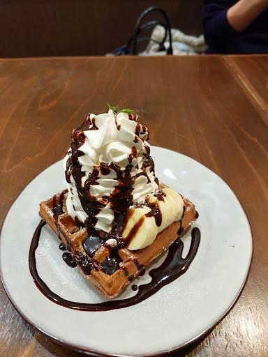 The waffles are very Japanese style (light, crispy on the outside). I got the seasonal choco-mint waffle and it was amazing! Perfect amount of toppings for the waffle. I also got the avocado waffle set which was okay. A bit bland for my preference, but overall I can’t complain. The portion sizes are appropriate for the price, but not a bargain or anything. There is no caffeine free teas or coffees available. There is wifi and I think I saw a few USB slots at the window counter (but the other seats don’t seem to have outlets). The music is very light and comfortable. Everything felt very clean. There is a small area with books and simple toys for kids as well as blankets if you get chilly. My waitress was very kind and the other staff seemed friendly. Directly across from the college, they have a space for oversized items (like instruments and baby strollers). There is a step up to the door and another to the bathroom if you have limited mobility. Made a stamp card and will...