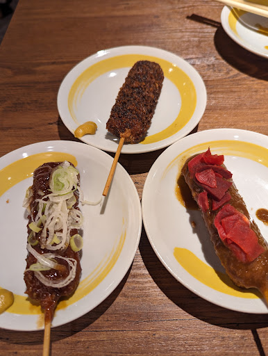 The katsu skewers were delicious (the first dish) Charcoal grilled chicken dish was hard to chew (3rd pic) Karaage and steamed tsukune were good (2nd pic) Potato salad presentation was rather disappointing to me because they didn't care to mash it for us but my friend found it pretty (4th pic)