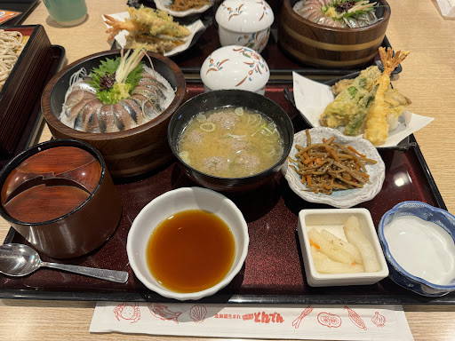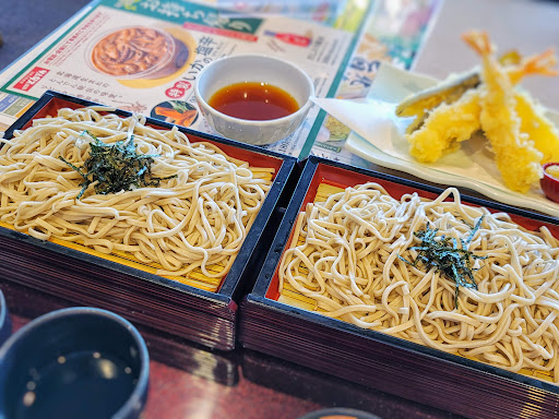 北海道の食材を生かしたファミレス。 今回は北海道そば食べ放題が開催されていたので初めて来店。 結論、蕎麦はとても美味い。きりりとしまり、蕎麦の風味、うま味もある。口に含む度に新鮮さを感じる。蕎麦つゆもしつこさなく、辛すぎず後味スッキリ。 60分食べ放題、最初に2枚が提供、その後続けて3枚目が来て、4枚目からは追加。 昼時もあったのか、蕎麦の提供は少し遅く待ち時間もあったのが少し不満。蕎麦の喉腰がよく、スルスルと蕎麦があっという間に食べ終わるので提供が遅いのは致命的。 6枚(約900グラム)食べても残り20分以上ありお腹満足。 天ぷらセットにした、天ぷらは普通かな。もっときりっと高温でカラッと仕上がってるとよかった。 北海道ソフトクリームは、濃厚なミルクの味が美味い。他のメニューも期待出来そうな良店。 残念なのは入店方法が旧来の紙に名前と人数書く方式。一番最後で店のドアの外に座って待っていたが、街席を詰める方式で無かったようだ。後から来る人が中の空いた待ち席に座ったりで自分の待ちがわかりずらい。そして私ま悪いのだがヘッドホンで音楽聴いていたので呼ばれたのに気付かなかったのでスキップされていた。この辺はスタッフの問題でないが改善必要。 店内では配膳ロボットが移動してたりするが、配膳ロボットから客のテーブルへ料理移動はスタッフだったりとなんか不思議。 持ち帰り...
