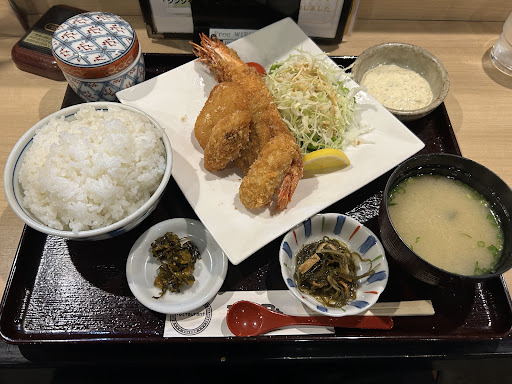 Read more佐世保から空港に下道で向かう途中に立ち寄り。駐車場が多く、車の時は入りやすいと感じました。 ランチでも頼もうと思ってましたが、目を引くランチメニューは平日限定。 残念ながら訪問日は土曜日でした… 気を取り直して「味自慢」と、書いてあったミックスフライを注文。 10分くらいで配膳されましたので、ペースは良いですね。 エビフライは頭までありましたので、ミソの風味まで感じられて良かったです。 ミックスフライの内訳は、頭付きのエビフライ×1、カキフライ×2、白身フライ×1、クリームコロッケ×1でした。 白身フライとクリームコロッケは恐らく冷凍で、オマケ程度かな?無いよりは嬉しいが味自慢という程では無い。 その他茶碗蒸しも付いて1500円ですから、土曜日ランチとしては妥当かなっと。 次が有れば人気No.1と書かれてるレモンステーキセットを味わいたいと思いま...