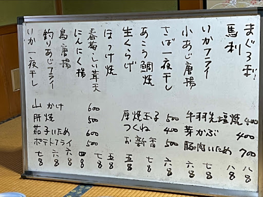 平日夜に訪問しました。 駐車場は目測ですが車が十台分位は止められるかな。お店は左と奥に入口がありますが、多分左は団体客向けで普段は奥の店しか開いてないみたいです。 店の中はお一人客はカウンター、複数人はお座敷と言った所。今回は家族できたのでお座敷へ。 メニューはホワイトボードに手書きの物、お酒のメニュー表はありませんが、瓶ビールと生ビール、入口で見た限りは日本酒が何種類かありました、今回は瓶ビール。(✖️3) 写真撮り忘れた物を含めて色々頼みましたがどれも美味しかったです。価格も手頃。 ゆったりくつろげ...