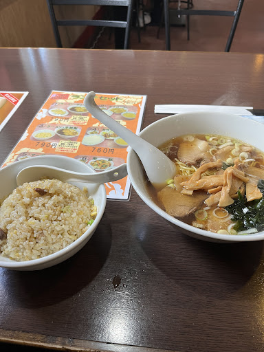 Read more確かに…可もなく不可もなくとゆう感じなのかな。 オーダーは平日ランチのラーメン➕炒飯のセット。ラーメン=中華そばですが、盛付けで麺のほぐしがなく…ん〜。 でも、炒飯はパラパラの昔のアッサリ炒飯とゆう感じ。他の方が仰る通り、メニューからも炒め物に力入れてる感じでした。 店内はテーブル...