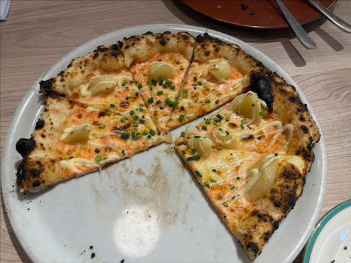 Read more2時半以降に一人で来店。友人と来るときと違って、空いてくるであろう時間帯でも、一人のときはあまり良い席に案内してもらえない印象です。 食べたかったタラもピザを注文して、出てきたピザが焦げているようでした。それを伝えると「聞いてきます」と言って、ピザを持って厨房へ。 再び現れたのは違う店員で、同じピザとメニュー表を持ってきました。 そして、メニュー写真を見せてこの焼き方が普通です、と伝えられました。確かに写真も縁が焦げていました。 ピザはここまで焼かないと中が半焼けになってしまうとのこと。 そして、違うものが良ければ何でも作り直しますと言うが、タラもピザはこれが正常だと断言されました。 私はタラもピザが食べたくてここに来たのに、他の物が食べたいわけないじゃない! 仕方なく、厨房とテーブルを往復して美味しさも半減しているであろうピザを食しました。 裏も焦げているので、味はもちろん所々焦げ臭く焦げた味がしました。 他のお客さんもピザの耳を残していました。普通なら耳まで美味しくいただきたいと思うはず。 こちらのお店は提供する商品に絶大な自信を持っておられるようですが、自信はお客様の評価の上に成り立つものではないでしょうか? 一人の時間をまったりと有意義に過ごしたかったのですが、残念なランチとなりました。 ちなみに同じ系列店でタラもピザを注文したときは、縁は焦げた部分はあるものの中心は焦げておらず、半焼けということもなく、むしろ素材の味を感じて美味しくいただけました。 同じ系列店でも、焼き加...