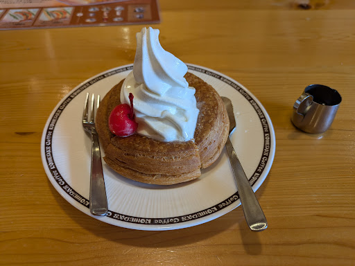Read more初めてシロノワール食べました!シロップかけなくても美味しいけれど、かけたらもっと美味しかったです。初めはデニッシュが温かく、そのうち溶けたソフトクリームが染み込んで冷たいデザートになって。 大きいサイズを二人で分けました。十分お腹一杯です。ミニサイズもあり、迷いましたが、一人で食べるにはきつかったかなぁ。 コーヒーも苦味が強くなく飲みやすくて美味しかったです。