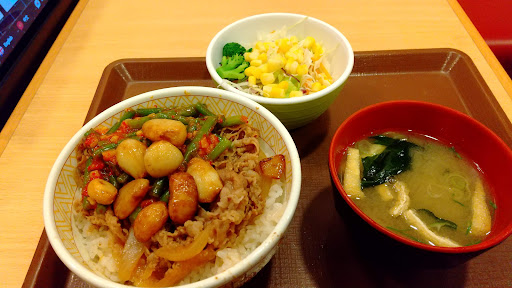 Read more日曜の午後1時に来店しました。 カウンターの席に座ったら、前の客のお盆は下げてありましたが、こぼれた紅生姜が机に残っていました。 ボタンを押してから10分以上も水も出されずに待たされ、水を持ってきましたが、お待たせしましたの一言もありませんでした。 注文後、商品の提供の順番も注文と異なる順番でしたが、そのことについての説明、謝罪はなし、他の客のみそ汁にまつ毛が入っていて、取り替えた後に厨房から『美味しいまつ毛だったんじゃない?』というような会話と笑い声が聞こえてきました。 すき家は結構通っていましたが、ここには...