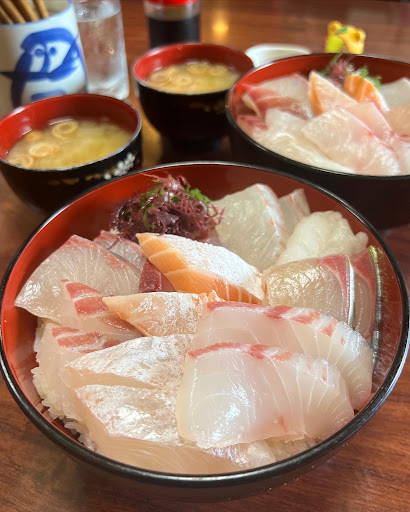 厚切り海鮮丼♪ 桂川町総合体育館のすぐ近く🏠🐾 ▶︎#海鮮丼 ¥980(税込)/1日50食限定 口いっぱいのお刺身がたっぷり海鮮丼🐟この日は 6種(エビ,サーモン,コロ鯛,鮃,ハマチ,鰤)のお魚で お刺身はどれも1cm程の厚みで食べ応えもあり◎ ご飯大盛¥100+お味噌汁も付いて美味しく完食♪ 田川の市場から直接仕入れてるから,お手頃な値段 で海鮮丼を提供できるんだとか🐟薄口醤油だった けど,厚みある刺身が15切程入ってこのお値段は◎ 雑多な雰囲気でカウンター席と掘り炬燵席あり🪑 海鮮丼は先着順で,入荷状況の確認や入店ギリギリ の時間だと電話で注文で受付も可とのこと◎近場 の人が訪れるローカルなお店好きな人はぜひ🐾 ご馳走さまでし太...