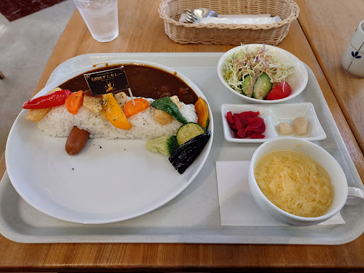 Read more券売機よこにメニューの写真が貼り出されていて参考になります。パッと見ではどのメニューもそれほど手が掛かっていない、よくある食堂クオリティの印象。 ならば推しているものを、ということで「じんじんうどん」なるものをオーダーしてみました。 うどんの上に舞茸、ナス、カボチャが乗ってます。これらトッピングは素材が良質でした。 スープはよく言えば優しい味。悪く言えば薄くて物足りない。いちばん気になったのは麺で、茹で過ぎ?失敗?と疑いたくなる感じでした。 リピ...